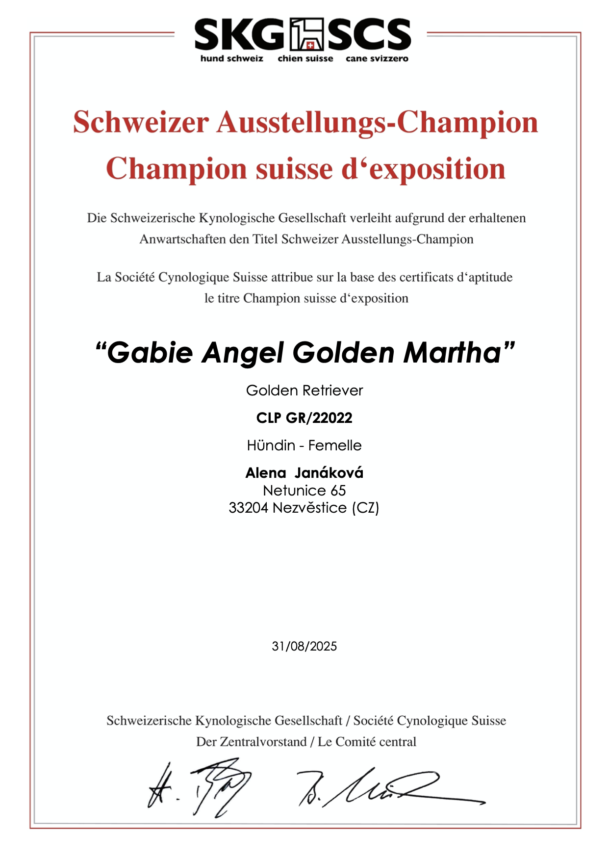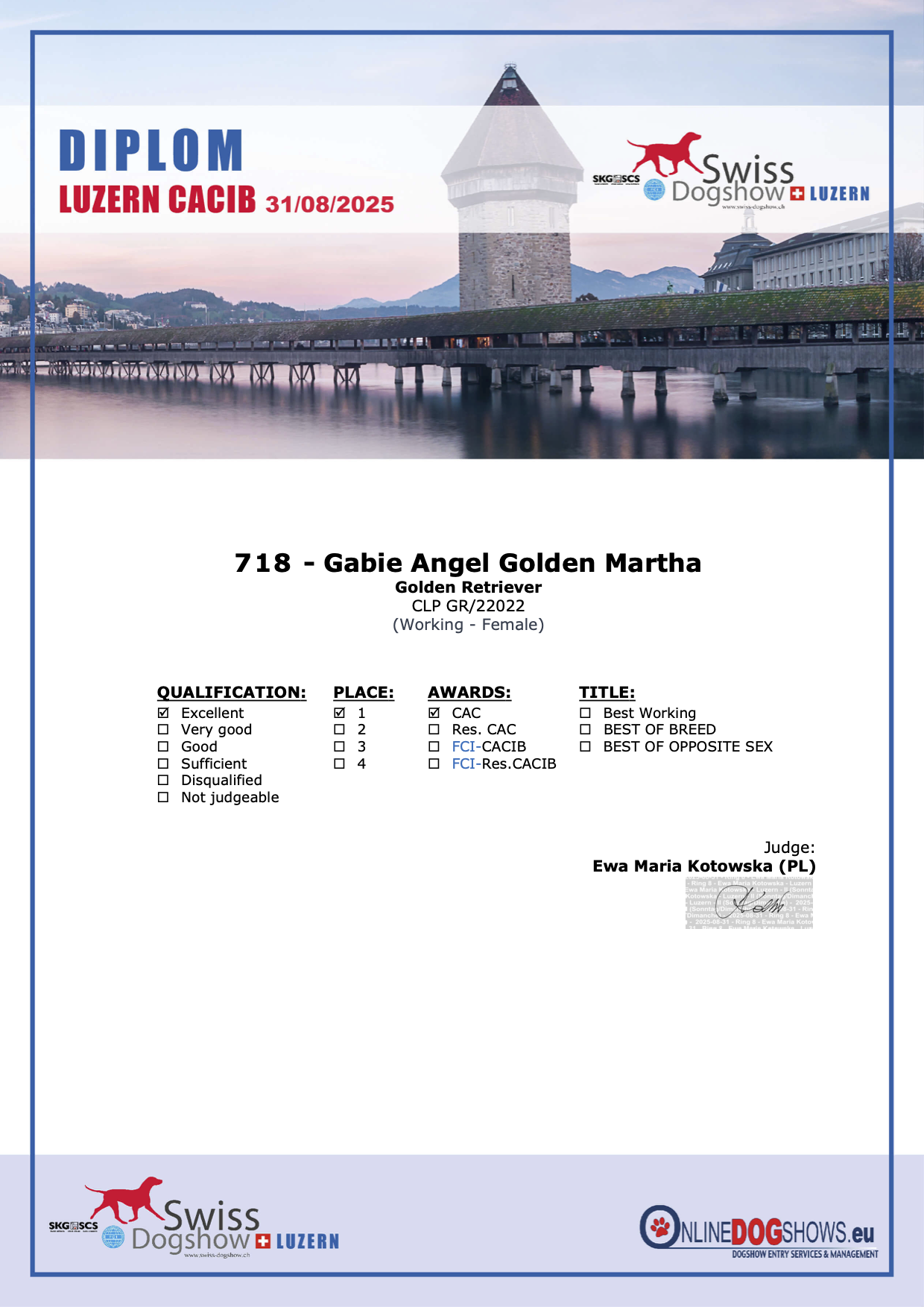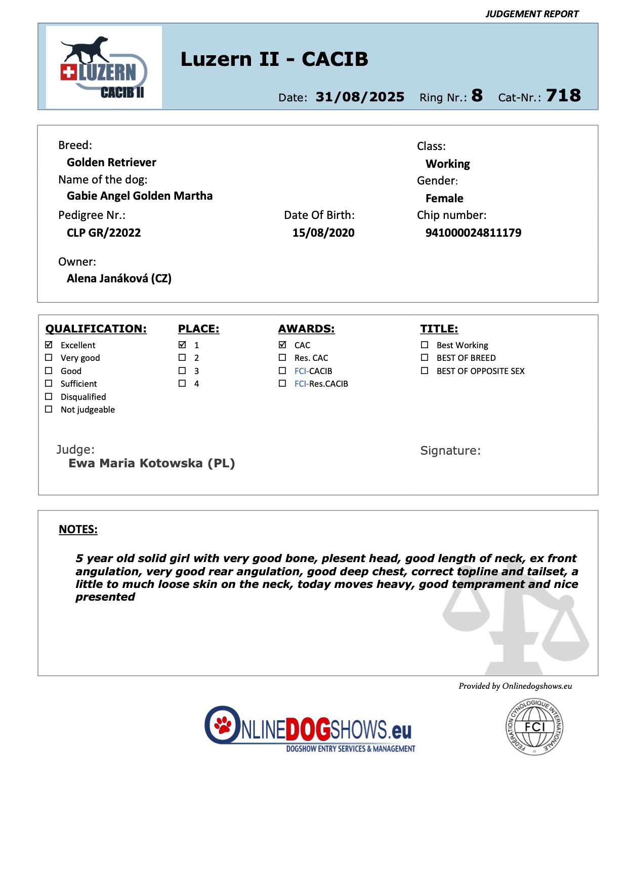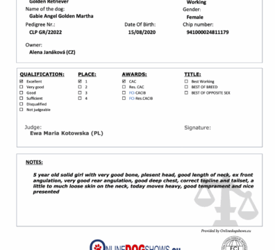 Výborná 1, CAC 🏆-  rozhodčí: Ewa Maria Kotowska (PL)