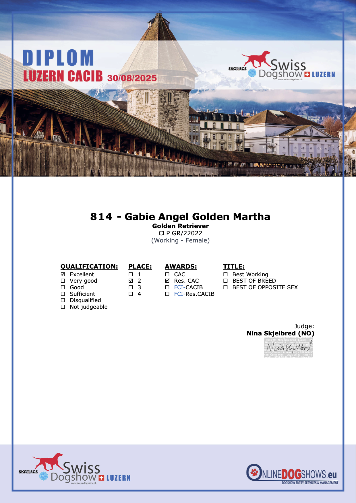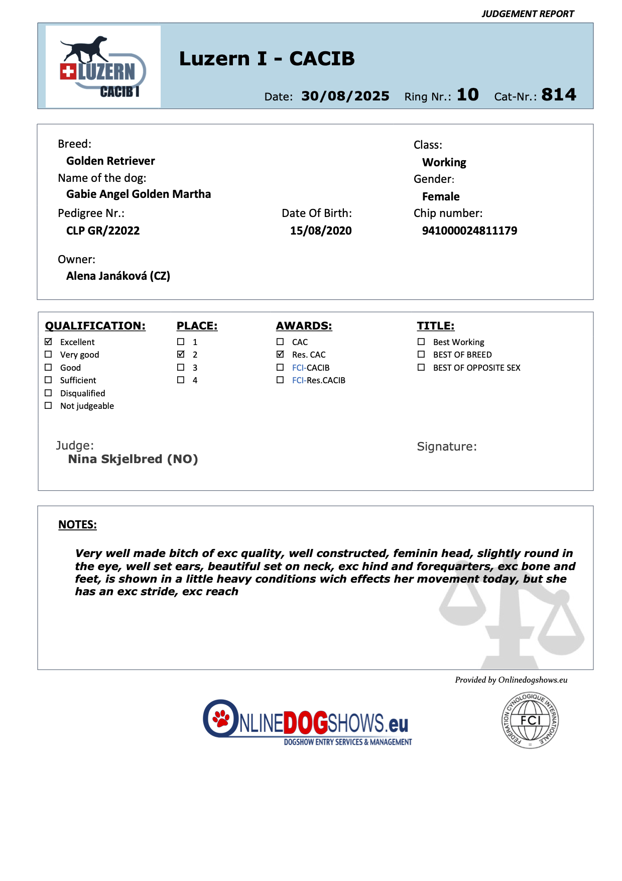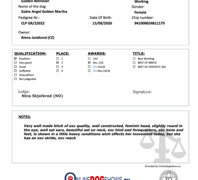 Výborná 2, res. CAC 🏆- rozhodčí: Nina Skjelbred (NO)