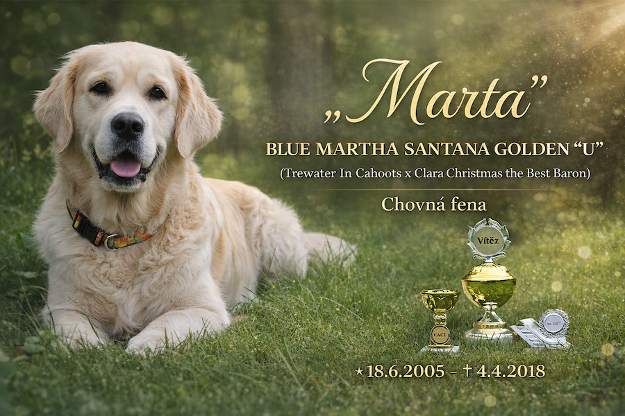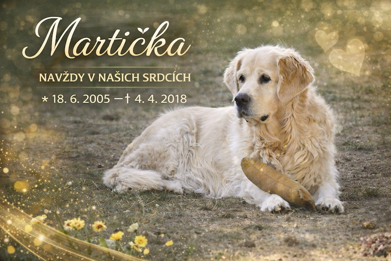 Za Duhový most navždy odešla naše milovaná Martička, kamarádka a úžasná máma třinácti štěňat, velká milovnice všech mláďat, náruživá divačka televize a burských oříšků. Její obrovskou vášní bylo lovení kamínků z vody.