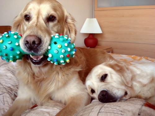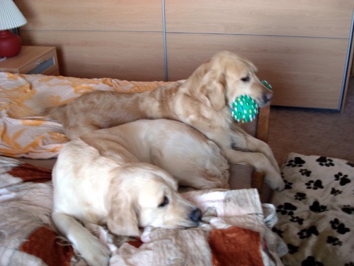 V pátek začaly mým dětem Terezce a Honzíkovi prázdniny a proto se uvolily, že si vezmou na starost Martičku a Daníčka. Já byla v práci, ale nedalo mi to a tak trochu jsem se je snažila kontrolovat na dálku. Volám jim, jak se daří a co psi, jestli je tam moc nezlobí. Odpověď zněla – jo dobrý, nic se neděje, v pohodě…., vlastně jsem se toho moc nedozvěděla. Druhý den beru foťák a že si vyfotím tu krásnou ledovou přírodu, kterou nám připravila inverze. Jaké bylo moje překvapení, když kromě fotek z přírody jsem našla fotky z páteční pohody hlídání psů od Terezky a Honzíka. S tím se mi však nepochlubily, že mi psi leželi v peřinách. Podle fotek tedy vím, že mi nelhaly a že doma opravdu panovala pohoda, jak sami vidíte. Vím, že naše psy milují stejně jako já a když je třeba, tak se o ně dokáží postarat a za to jim velmi děkuji.