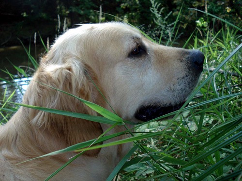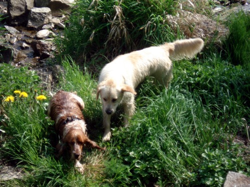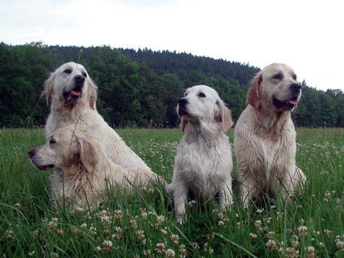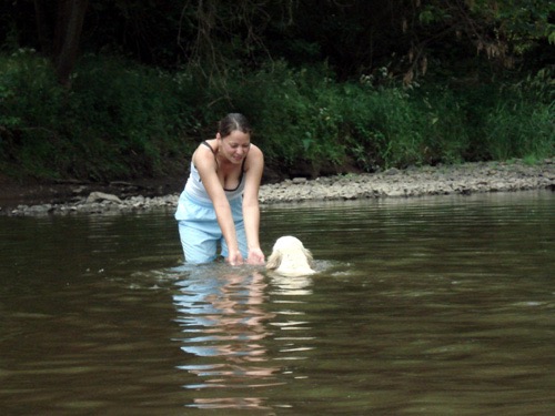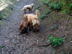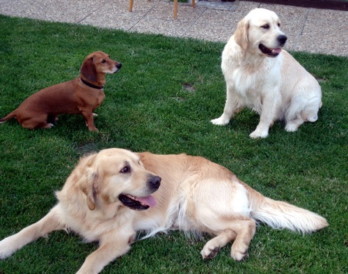 V neděli přijela Katka s přítelem Mírou a jejich pejskem Daggim (Easy To Be Santana Golden), Lenka s holkami – Trixi (Blue Beatrix Santana Golden) a Felon (Felon The Best Baron). Vzhledem k tomu, že náš Daníček bere antibiotika a má být v klidu, tak s námi nemohl jít k řece, kde to bylo v tom horku opravdu nejlepší řešení. Ale taky to doma zvládnul, vždyť jsme se mu vrátili.