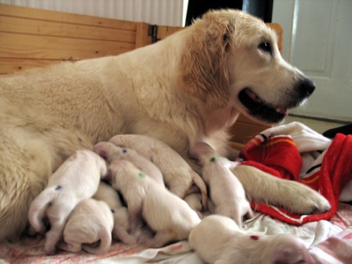 Tak tady je nás ještě všech 11 dětiček († 10.9.2005 Blue Bella) s naší maminkou Clarou v ten báječný den 18.6.2005.