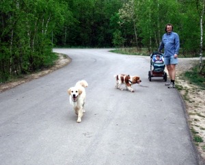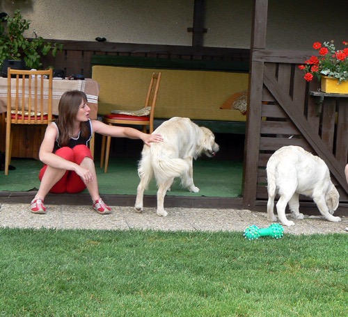 O víkendu jsme se domluvili s p. Kadlecem, že spolu vyrazíme potrénovat jeho černou labradorku Trixi a naší Martičku. A tak jsme celý nažhavený vyrazily s Martičkou v neděli po obědě do Dnešického lesa. Samozřejmě nechyběl ani můj dvorní nosič batohu,moje máti (to proto, aby prý byla něco platná). Trénovali jsme aport a na louce u lesa handling. Byli jsme pochváleni, jaký že to děláme pokroky. No to tedy nevím, pokrok si představuji trochu jinak. S tréninkem jsme to pravda moc nepřeháněli, ale za to jsme si všichni užili tuto větrnou neděli dosyta, hlavně Martička a Trixi se parádně vyřádily.