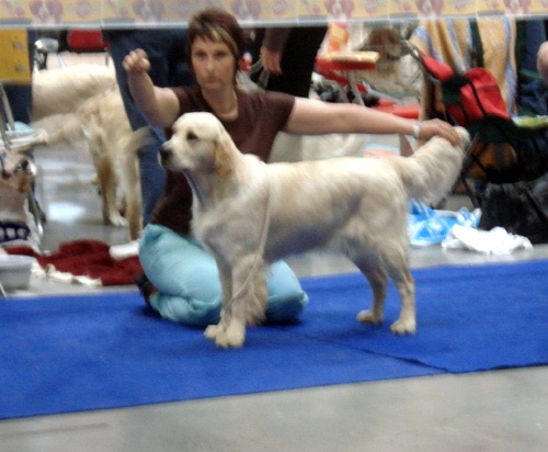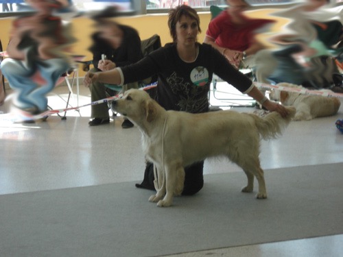 Na této výstavě jsem nejvíce fandila pejskovi Daggimu ( Easy To Be Santana Golden) a jeho paničce Katce Štampachové, jelikož to byla jejich první výstava. Daggi se vystavoval jako profík a byl v kruhu moc hodný a šikovný. A právem si tato dvojice zasloužila ocenění velmi nadějný 3 a velmi krásný posudek od rozhodčí z Anglie Mrs. Janet Buckingham.