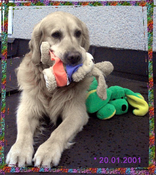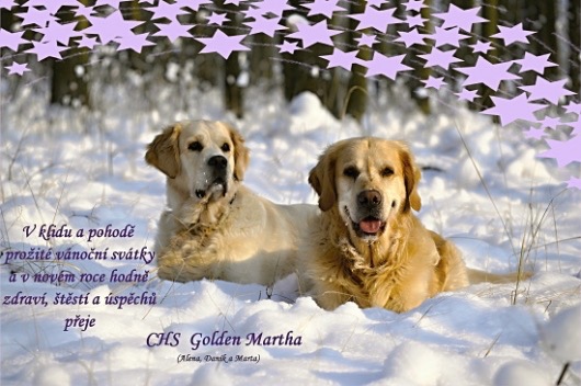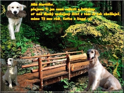 Děkuji za pěkný dopis od paničky Barnyeho (Barnye Golden Martha) a za fotky. Posílám pohlazení Barnyemu a pozdrav do Hřebče, kde Barnye bydlí v domečku se zahradou.