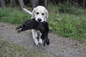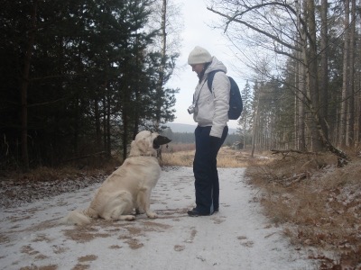 Po vánočním lenošení a přejídání jsem si Katkou naplánovala procházku a že zase trochu potrénujeme ty naše hafany – Katky Daggiho – Easy To Be Santana Golden, naší Martu a Daníka. Nesla jsem jen dummy (aporty), jelikož jsem žádnou zvěř bohužel neměla. Cvičili jsme v lese dohledávku 2 ks ve čtverci a pak také paměť k aportu – marking.