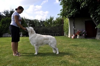A jak si žije miláček Barnye: „Barney je opravdu šikovnej. Zvládáme povely jako je sedni, lehni, dej pac, popros. Dokonce se už skamarádil s naší kočičkou a nemá problém ani s ostatními hafany při procházce, ale ze všeho nejraději jezdí autem. Je to velký pomocník, jak v domě tak na zahradě. Minulý týden jsme se od sebe poprvé odloučili – na 8dní, které trávil doma se zbytkem rodiny. S tátou chodí koukat do ledničky, co by si dali na zub a mamče pomáhá při praní a uklízení. Opravdu jsem si na něj za těch pár týdnů velmi zvykla a po celou dobu mé dovolené mi moc chyběl. Při mém návratu domů proběhla velká vítačka a už mám bělouška zase všude v patách“.