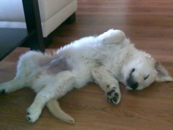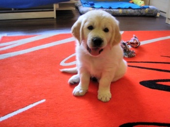 Dnes jsem obdržela od páníčků Dannyho (Baddy Golden Martha) zprávy, jak se mají s Dannym dobře, co všechno jejich mrňous umí – sedni, lehni, čekej a povel zůstaň pilují. Moc děkuji také za fotky a za to, že vám dělá Danny jen samou radost. Co víc si přát.