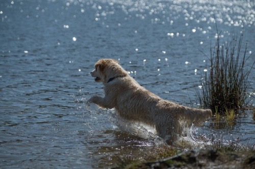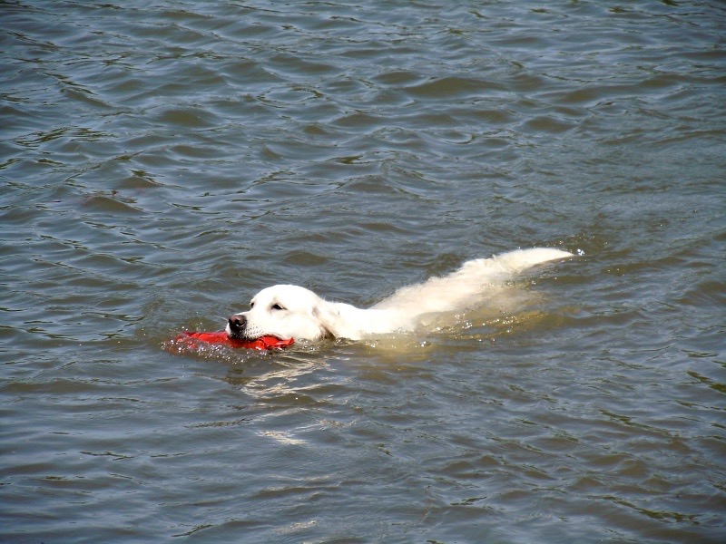 Podle fotek panovalo krásné počasí, svítilo sluníčko a tak kluci řádili ve vodě. Darwin jako starší brácha ukazoval Erwinovi, jak se aportuje z vody a Erwin si hrál na zloděje a chtěl dummy vzít, ale to se mu nepovedlo. Sandro, díky moc za fotky. Více fotek – z d e.