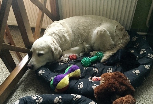 Saša je už zase veselá a hodně se jí ulevilo. Jen má v hlavě pořád štěňátka a hormony se v ní perou. Do pelíšku si nosí všechny hračky, které doma najde a přenáší si je sem a tam. Jsou to její „štěňátka“ :). Ale jednu výhodu to má, že pro tyhle její „štěňátka“ nemusím po dvou měsících hledat majitele. Ty jí/nám zůstanou napořád. A tak není zase tak špatně :). Natočila jsem na mobil video, jak mi Saša ze svého pelíšku a od svých „štěňátek“ povídá :)). T a d y je.