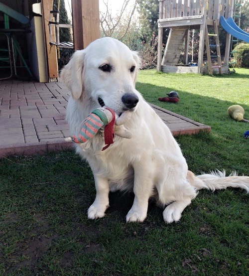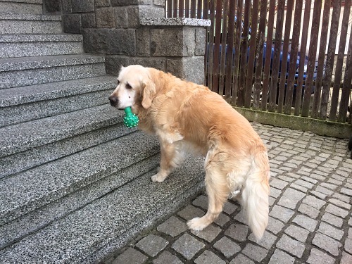 Můj nejstarší a nejzlatější člen v naší psí smečce Daník – Dandy Golden Prestige. V lednu oslavil 15 let a je to pořád frajer. Stále má radost ze života, i když už mu to špatně šlape a nohy ho bolí. Ale pořád se snaží a má dobrou náladu. Nejvíce mu dává zabrat 10 schodů do baráku (kromě 3 fen), které musí zdolat několikrát denně. A zatím to vždycky nějak vymyslí a nakonec zvládne. Natočila jsem kraťounké video, jak mu to do schodů šlape. No vlastně, když je kraťounké, tak to je důkaz, že je to fofr pes :), nebo máme málo schodů. Špatně se mu do schodů dýchá, ale jeho oblíbenou zelenou kostičku, kterou má od štěněte, si musí nést s sebou. A není to apríl 🙂