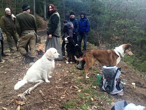 S přáteli dvounohými i čtyřnohými jsme se sešli dopoledne na Velký pátek, abychom se vydali na společný výlet na vrch Žďár. Bylo to jako vždy moc fajn, jen mohlo být lepší počasí. Vzala jsem pro tentokrát jen Andělku, které se dvořili psi Lot (krátkosrstá kolie) a Ford (královský pudl) a skoro se o ni poprali. Berňačky Sisi a Dýna byly s Andělkou kamarádky, jak taky jinak že :))