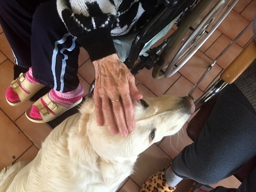 jsme tak trochu oslavili na canisterapii u babiček a dědečků v Domově pro seniory ve Vlčicích, kteří ji rozdali půl pytlíku piškotů a to se Andělce moc líbilo. Takže spokojenost byla na obou stranách.