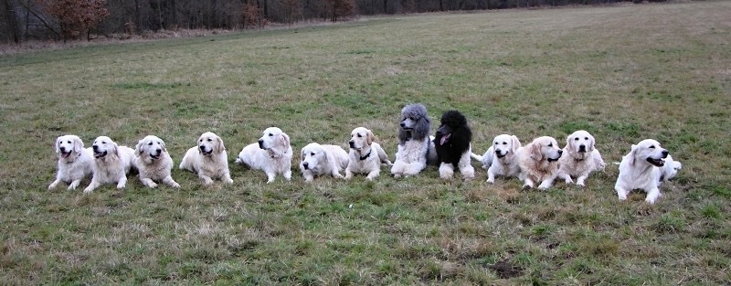 Dnes bylo na „velké louce“ v Radobyčicích u Plzně bílo. Sešli jsme se v hojném počtu a bylo nás jako psů :). Jestli jsem dobře počítala, tak jsem napočítala 15 psů a 10 páníčků. V tak velké partě nevím, kde mám feny a je dobré, když si ony hlídají mě, ale to se nedělo :). Po delší době jsem zase viděla 6 měsíčního Erwina (Erwin Star GM) a to jsem byla moc ráda. A Saša tam měla svoje 3 děti – Andělku, Darwina a Erwina.