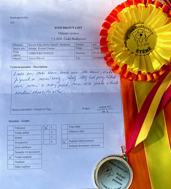 Stihl si také svou premiéru v závěrečných soutěžích, kde běžel nádherně u paničky, byl soustředěný a nic ho nerozhodilo. Na první výstavu opravdu velký zážitek. Všichni jsme si ten den užili.