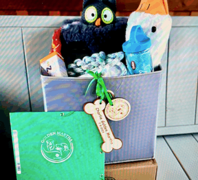 startovacím balíčkem – krmivo, hračka, deka s pachem domova