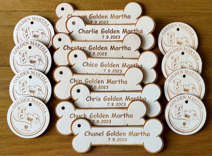 Štěňátka odcházela postupně celý týden. Ve čtvrtek si přijeli pro šediváčka Chrise a doma mu říkají Frankie, ve čtvrtek také odjel modrý Chiron a doma mu říkají Percy. V pátek odjel žlutý Chip a říkají mu Marcel. V sobotu odjel hnědý Chico a toto jméno mu zůstalo. Dnes odjela červená Chanel a doma jí budou říkat Chanel a jako poslední dnes odjel fialový Chester a budou mu říkat Brit.