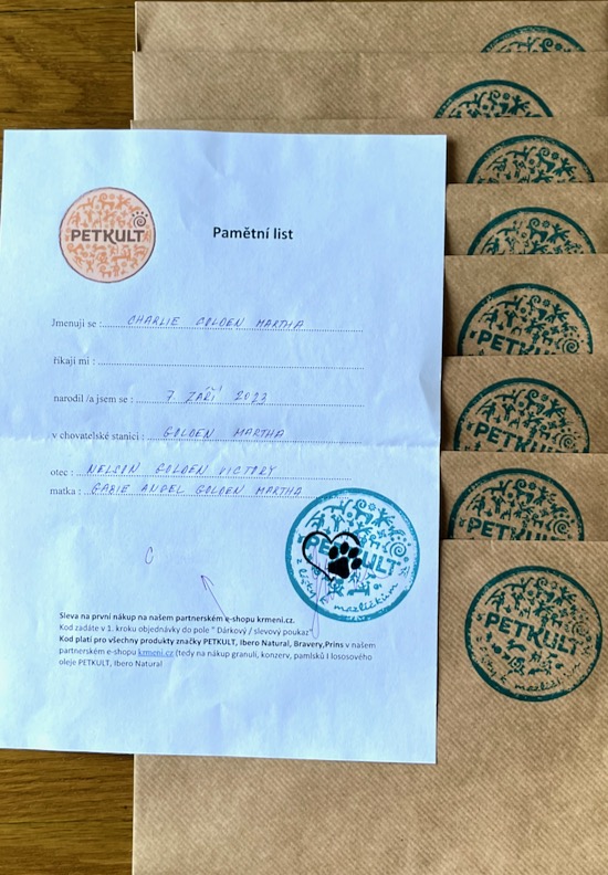 Dnes nám také přišla potvrzená Přihláška k zápisu vrhu štěňat z ČMKJ a přidělená čísla zápisu: 25353 – 25360/23