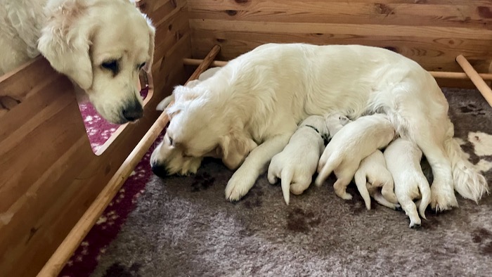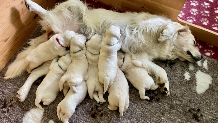Zlatíčka moje, přeji vám hodně zdravíčka, hodně mlíčka od Gábi, ať z vás vyrostou úžasní zlatí retrívři se zlatým srdcem a slibuji vám, že pro vás najdu milující páníčky!!!