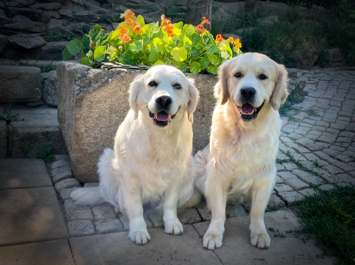 Největší radost mají štěňata, když si můžou hrát v rourách na zahradě. Prolézají a honí se a nikdy je tam odtud nemůžu dostat domů. To pak musím hodně, ale hodně šustit s pytlíkem piškotů a takto je nalákat. Roury zkrátka milují a tam se opravdu utahají a vydovádějí. Mamina Gábi jim v tom vydatně pomáhá.