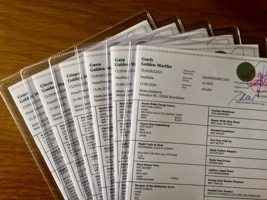 Všem štěňatům jsem vytvořila v celosvětové databázi retrívrů K9 rodokmeny.