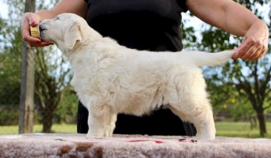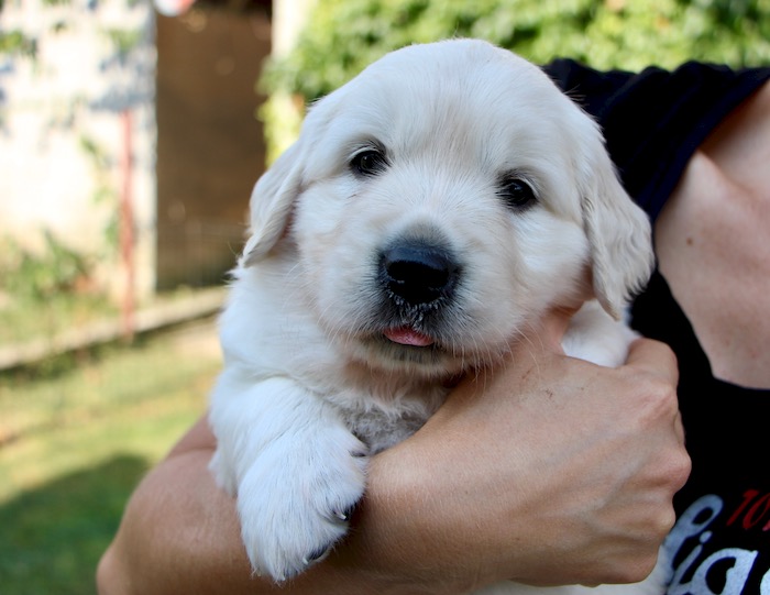 Štěňátkům se pěkně otevírají oči, ale zatím ještě bez plně vyvinutého zraku. Nekoordinované pohyby se postupně mění v chůzi, jsou hodně šikovná, hlavně když jejich mamina přijde do porodní bedny, to se můžou přerazit :). Čich tedy mají výborný a stále se jim zdokonaluje.