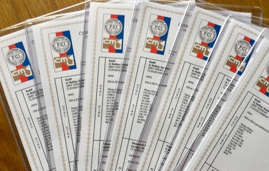 Dnes nám poštou přišly z plemenné knihy ČMKJ Průkazy původu.