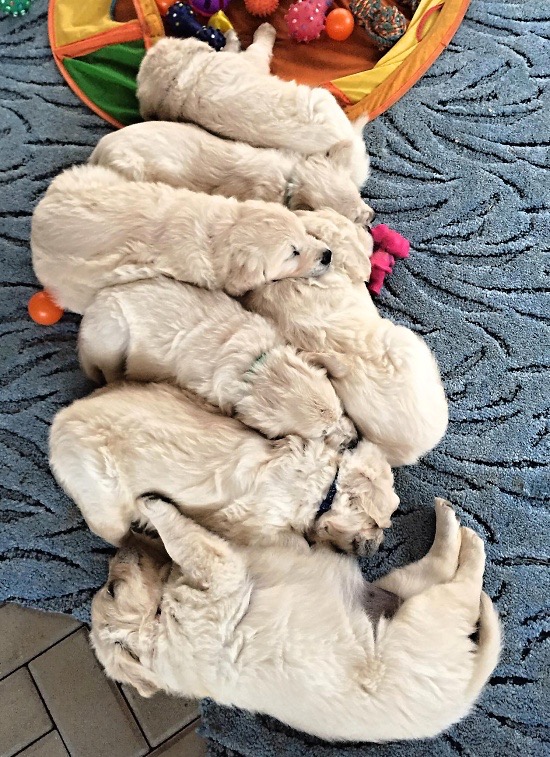 Zlatíčka moje, přeji vám hodně zdravíčka, hodně mlíčka od Andělky, ať z vás vyrostou úžasní zlatí retrívři se zlatým srdcem a slibuji vám, že pro vás najdu milující páníčky!!!