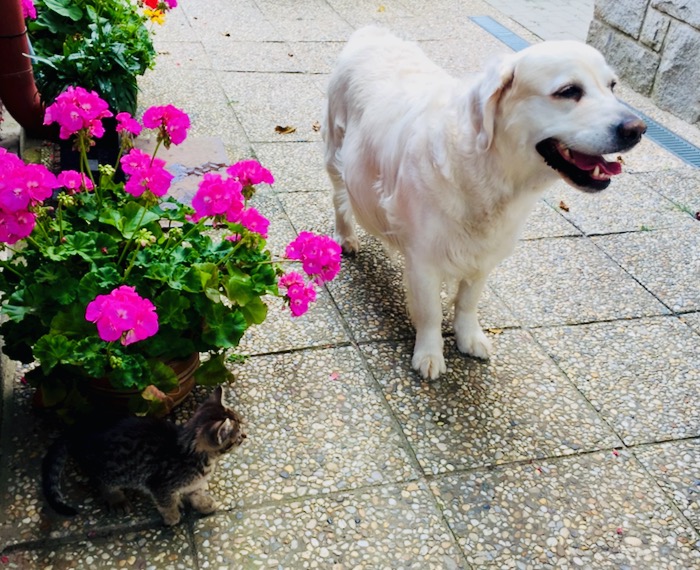 Máme spoustu krásných fotek a videí. Na videiích je vidět, jak si štěňátka hrají s naším koťátkem, které je rádo, že si s nimi může hrát. I když ho to někdy bolí, tak nedbá a pořád vybízí štěňata ke hře. Honí se spolu a opravdu si vyhrají. Je to lepší než pozorovat program v televizi.